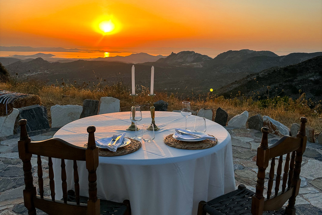 Αν θες να πας την εμπειρία ένα βήμα πιο βαθιά, κλείσε (κατόπιν κράτησης) το πριβέ δείπνο στο αλώνι. Ο Γιώργος και η μητέρα του, οι άνθρωποι πίσω από το Αντάμωμα, θα σε καλωσορίσουν με θέρμη, θα σου διηγηθούν ιστορίες για τον μύλο, τον θερισμό και την παρασκευή του αλευριού και θα σου σερβίρουν ένα αυθεντικό “4 hands” μενού με πιάτα που τιμούν τη ναξιώτικη γαστρονομία. Δεν είναι απλώς ένα δείπνο, είναι μια πολυαισθητηριακή εμπειρία γεμάτη γεύση, μνήμη και αλήθεια.