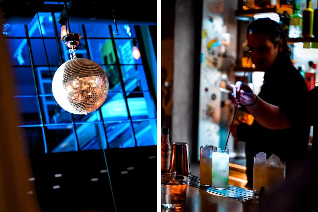 Σάββατο βράδυ κι όλα τα παραπάνω τα επιβεβαιώνεις στο κοινό κάθε ηλικίας που κάθεται στη μπάρα, στα τραπέζια αλλά και έξω, όλο ενθουσιασμό, αλλά και στη λεπτοδουλειά σαν μικρή ιεροτελεστία που αφιερώνουν για κάθε ποτό. Κάθε κίνηση, κάθε πάγος, κάθε γαρνιτούρα γίνεται μέρος μιας παράστασης που επαναλαμβάνεται ακούραστα κάθε βράδυ, πάντα όμως με κάτι νέο να ειπωθεί μέσα από το ποτήρι. Από την τρέχουσα κάρτα τους, δε γίνεται να μη λατρέψεις το «Σεξ στον καναπέ», ένα μιξάρισμα από τζιν, λικέρ περγαμόντο, τζίντζερ, μαρμελάδα μαύρων μούρων, κατακόκκινο, παθιάρικο και γλυκό με μια ωραία αψάδα. Η Paloma τους από την άλλη είναι ξακουστή, κι από τις καλύτερες της πόλης, ενώ σερβίρουν και φρέσκια βαρελίσια μπίρα, αν είσαι λάτρης του ζύθου. Ποτό στο χέρι και μουσικούλα, δε χρειάζεσαι τίποτα άλλο.