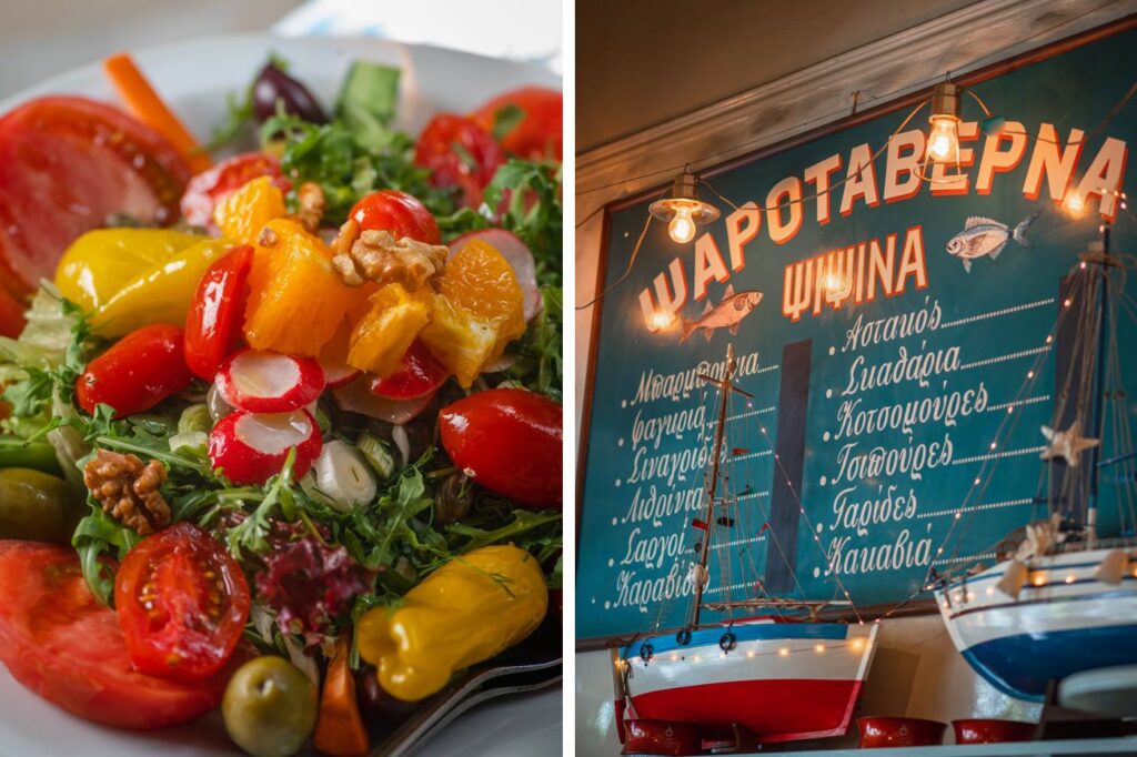 Η κουζίνα κινείται ανάμεσα στην ελληνική παράδοση και τη σύγχρονη προσέγγιση, από τα φρεσκοτυλιγμένα ντολμαδάκια μέχρι τη βελούδινη ταραμοσαλάτα και τις καλοφτιαγμένες σπεσιαλιτέ που αναδεικνύουν την πρώτη ύλη. Καθαρές γεύσεις, ευκρίνεια και ειλικρίνεια, ένα μενού που το λατρεύεις, με πολλά twists, υπόσχεσαι να ξανάρθεις.