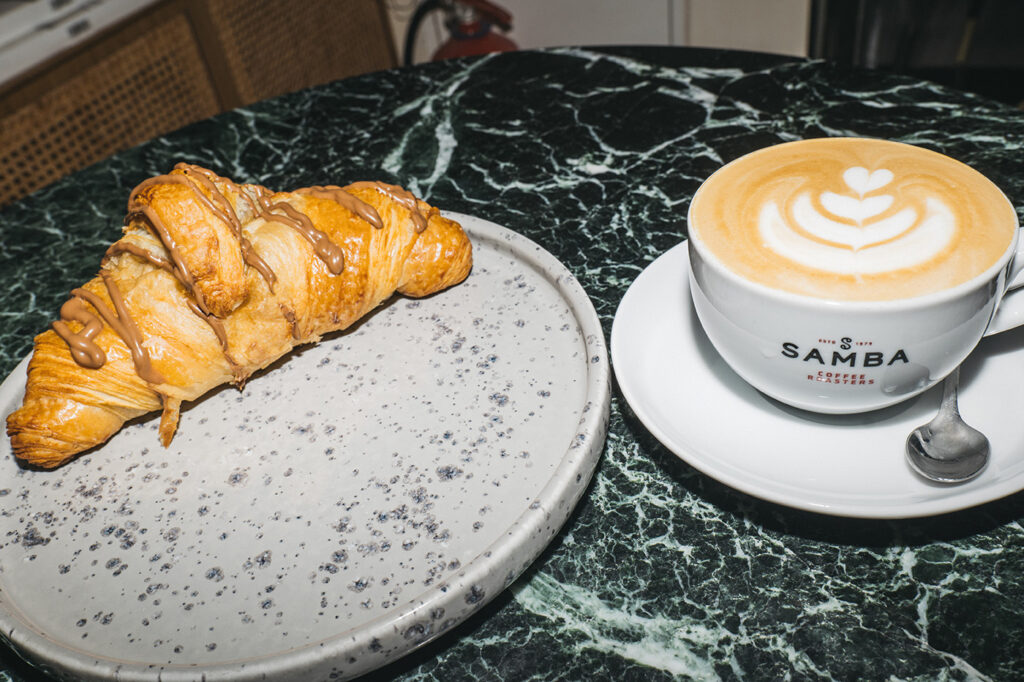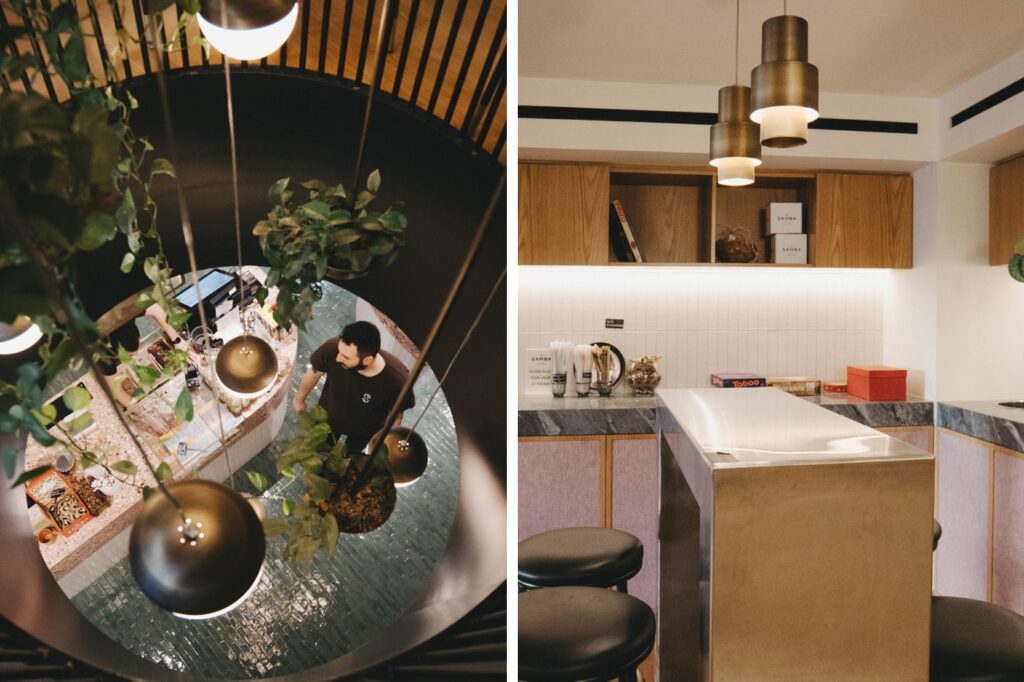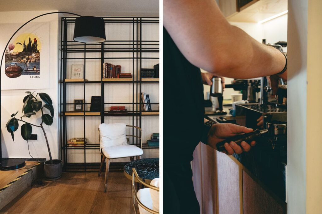 Το Samba Crossroads στήνει ένα φωτεινό και φιλόξενο σκηνικό με design στοιχεία, που μπλοκάρει μεμιάς τη βαβούρα του «έξω», ενθαρρύνοντάς σε να ανακαλύψεις τον κόσμο του «μέσα» δηλαδή το exclusive blend της Samba, πλαισιωμένο από ένα single estate και ένα microlot, με τις επιλογές να αλλάζουν κάθε τρεις ημέρες. Κι ενώ όλα αυτά συμβαίνουν στο ισόγειο, ανεβαίνοντας την στιλάτη σκάλα θα βρεις έναν δεύτερο χώρο για τους digital nomads, που αξιοποιείται επίσης συχνά-πυκνά για σεμινάρια καφέ, επαγγελματικά meetings, ακόμα και μίνι εκθέσεις.
