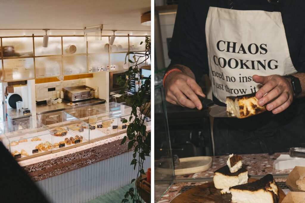 Παράλληλα, στα ράφια θα βρεις έξι έως επτά διαφορετικά single estates και δύο με τρία microlots, όλα ανώτερης ποιότητας, για όσους θέλουν να εξερευνήσουν πιο βαθιά τον κόσμο του specialty. Η εμπειρία συμπληρώνεται με matcha και smoothies, που ταιριάζουν απόλυτα στον ρυθμό της ημέρας, λίγο πριν σου τραβήξει την προσοχή η ανοιχτή κουζίνα κι οι προθήκες με τα μύρια όσα καλούδια. Το βασκικό cheesecake έχει γίνει σταθερή αξία, ενώ δίπλα του βρίσκεις cinnamon rolls, babka και banana bread, μαζί με cookies, brownies και διάφορα ακόμα γλυκά που εναλλάσσονται.