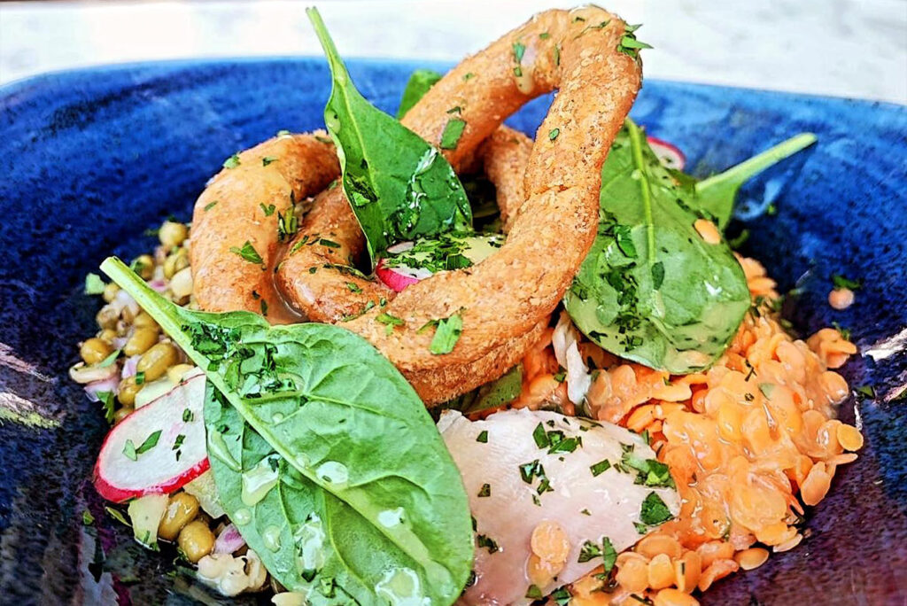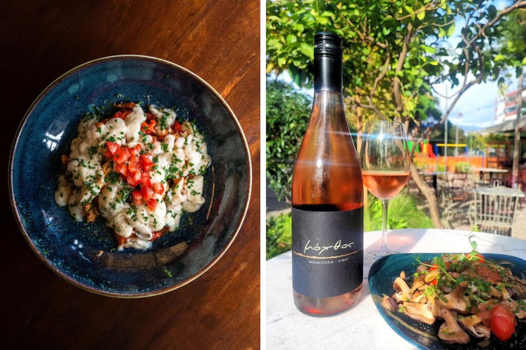 Ιδιαίτερη θέση έχουν και οι vegan επιλογές, που δεν αντιμετωπίζονται σαν υποσημείωση αλλά σαν κανονικό κομμάτι της φιλοσοφίας της κουζίνας. Κλασικές ελληνικές ιδέες, μεταφρασμένες με λεπτότητα στο σήμερα: μπριαμ γλυκοπατάτας με μπεσαμέλ σελινόριζας, πιάτα νηστίσιμα όπως σιγομαγειρεμένο χταπόδι με φάβα από αρακά και σαλάτα από μεσσηνιακή ροβίτσα, ή το σαγανάκι ξεροσφέρι, ένα τοπικό τυρί από μικρό τυροκομείο της περιοχής, δεμένο με καπνιστή μελιτζάνα.