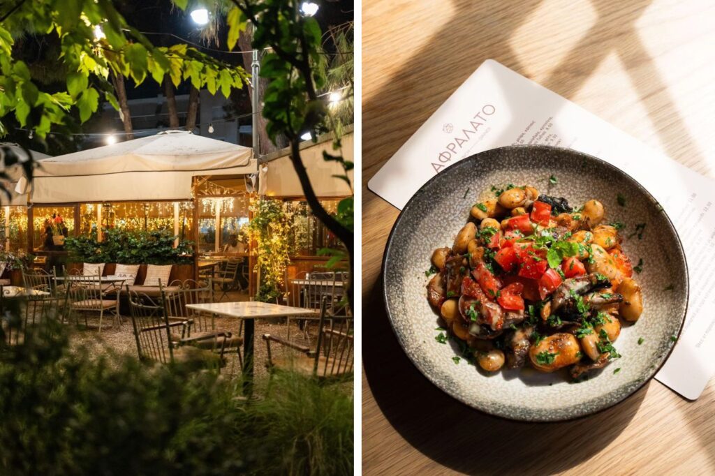 Εδώ η κουζίνα ξεκινά από τη γη. Από τον κήπο και από τις πρώτες ύλες που έρχονται από μικρούς τοπικούς παραγωγούς. Υλικά αυθεντικά, που αναδεικνύονται με νέους τρόπους, χωρίς να χάνουν την ελληνική τους ταυτότητα. Το Αφράλατο δεν προσπαθεί να εντυπωσιάσει με φανφάρες, αλλά με ουσία: με γεύσεις γνώριμες, δουλεμένες όμως με πιο σύγχρονη ματιά, σαν να ξαναδιαβάζεις μια κλασική συνταγή και να ανακαλύπτεις κάτι φρέσκο μέσα της.