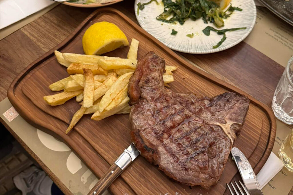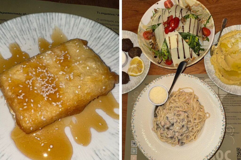 Να ξεκινήσεις οπωσδήποτε με φέτα που φωλιάζει ζεστή και πεντανόστιμη σε φύλλο, λουσμένη με αγνό θυμαρίσιο μέλι, τα μαμαδίσια κεφτεδάκια με σως γιαουρτιού, τις τηγανιές μανιταριών, τους άερινους κολοκυθοκεφτέδες με αυτό το σβέλτο πέρασμα από το τηγάνι που τους αφήνει ανάλαφρους. Η Κρητική χροιά – εμφανής, ευειδής και δυνατή – δίνει το παρόν της στα σκιουφηχτά με απάκι αλλά και στην τσικουδιά που φτιάχνεται από βιολογικά σταφύλια στην Ιεράπετρα της Κρήτης.